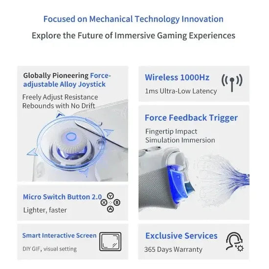 Includes an eight-directional D-pad, mechanical ABXY buttons, gyro sensor, four programmable rear buttons, and a sleek semi-transparent magnetic shell with customizable RGB lighting.
